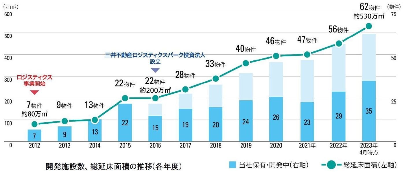 三井不動産ロジスティクスパーク、国内新規6物件の開発を決定2023年度中に累計総投資額1兆円に到達 倉庫作業の大半を自動化した「EC特化型物流センター」の開設も (Commerce Pick)https://www.commercepick.com/archives/33789