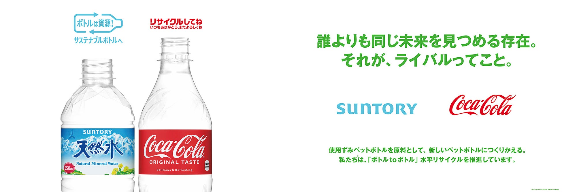 コカ・コーラとサントリー、「ボトルtoボトル」水平リサイクルの啓発コミュニケーションで協業 (Commerce Pick)https://www.commercepick.com/archives/35220