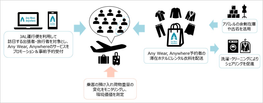 日本航空と住友商事、インバウンド向け衣料シェアリングの実証実験を開始日本航空(JAL)と住友商事は、JALを利用して海外から日本に訪れる人を対象に、衣料シェアリングサービスの実証実験を行うことを発表しました。レンタルする衣類には、国内で滞留しているアパレルの余剰在庫や古着を活用する予定です。